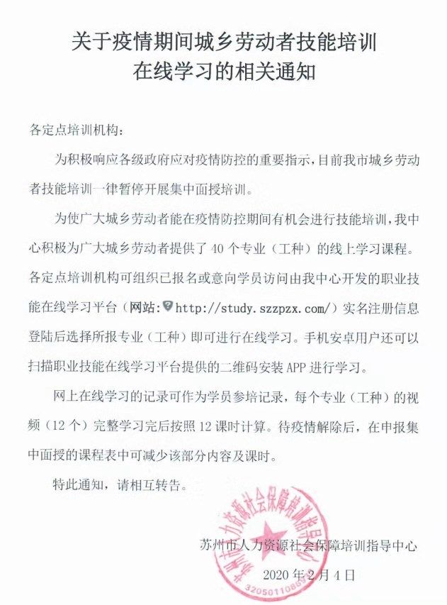 人社局发布在线学习相关通知!